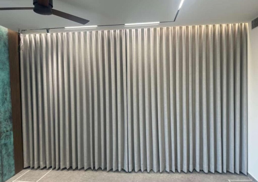 👉 Ceiling-mounted tracks give a clean, seamless look.